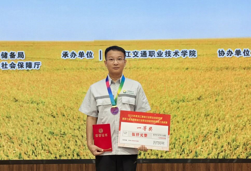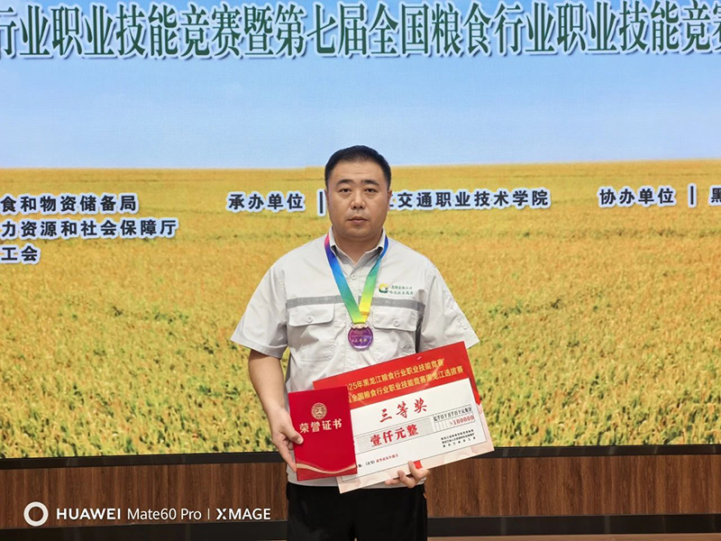 8月12日,2025年黑龙江粮食行业职业技能竞赛暨第七届全国粮食行业职业技能竞赛黑龙江选拔赛在黑龙江交通职业技术学院举行。经过激烈角逐,农投集团储备粮哈尔滨直属库孙智军荣获(粮油)仓储管理员职业职工组一等奖、周海洋荣获农产品食品检验员职业企业职工组三等奖,农投集团荣获优秀组织奖,省粮食行业协会荣获特别贡献奖。